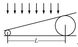 单选题 如图所示,两个直径微小差别且彼此平行的滚轴之间的距离为L,夹在两块平晶的中间,形成空气劈尖,当单色光垂直入射时,产生等厚干涉条纹.如果两滚轴之间的距离L变大,则在L范围内干涉条纹的 ( )