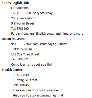 单选题 阅读下列文章,选出以下3道题的最佳选项.(3) You can visit Ocean Museum ______